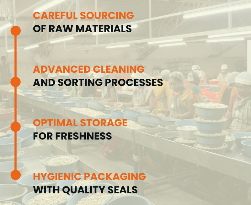 We’re proud to process our makhana, cashews, almonds, and pistachios at our state-of-the-art facility, where every step is guided by a commitment to excellence. From careful selection and cleaning to meticulous packaging, our processing unit ensures that every product retains its natural goodness and premium quality.
